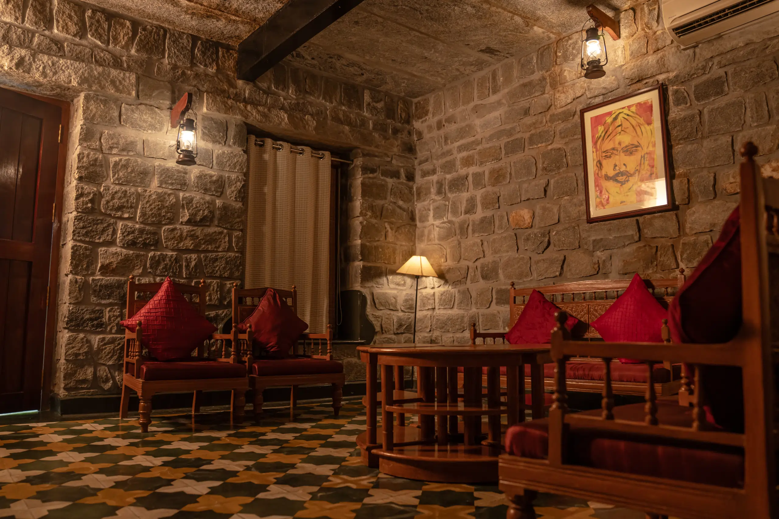 Large windows invite natural light and offer views of the surrounding greenery, creating a peaceful connection with nature. Whether you are enjoying a quiet morning coffee, spending quality time with loved ones, or retreating after a day of exploration, the Suite Room provides a tranquil sanctuary where luxury and heritage exist in perfect harmony.