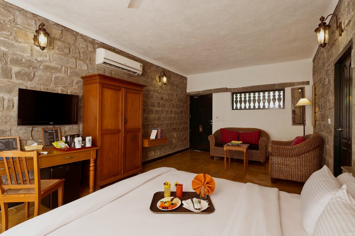 Step into an elevated world of comfort where luxury meets timeless elegance. Our Suite Rooms offer an expansive living experience, thoughtfully curated with refined interiors and subtle touches of South Indian heritage. With generous space to unwind, relax, and reconnect, every detail is designed to create a serene and sophisticated retreat — perfect for those who seek both indulgence and cultural charm in their stay.